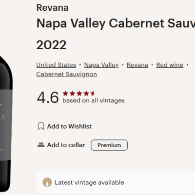 The 2022 Revana Estate Cabernet Sauvignon features rich aromas of blackberry, boysenberry jam, and cherry pie, complemented by flavors of dark raspberry, cocoa powder, and mocha, with a plush mouthfeel and ripe tannins. R2-6 -