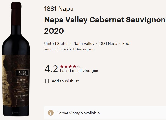 1881 Cabernet Sauvignon 2022 Napa Valley