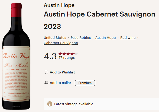 Austin Hope 2023 Cabernet Sauvignon 1 Liter Size Bottle