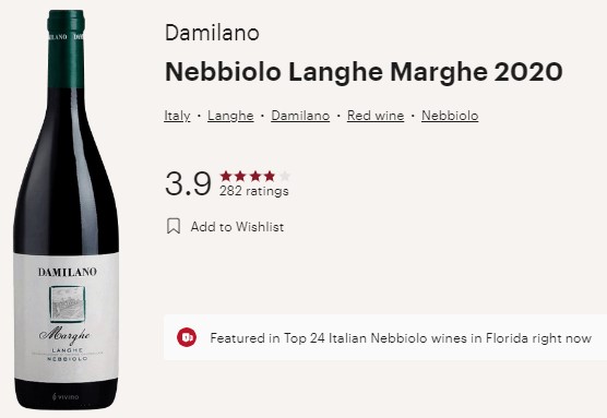 100% Nebbiolo grapes and the limestone/clay-rich soil in the townships of Langhe are the fundamental traits that give this wine its ruby red color with hints of maroon reflections, a delicate and unique fragrance with tips of violet and red fruit, and finally a balanced tannic taste and a velvety, harmonic body.