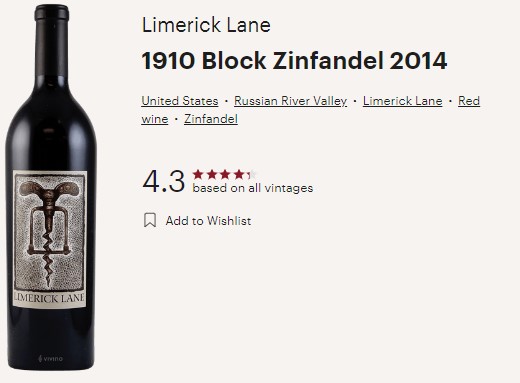 Limerick Lane “1910 Block” 2014 Russian River Valley Zinfandel