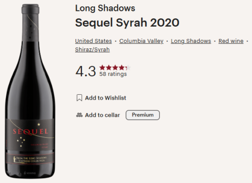 Long Shadows 2020 Sequel Syrah Columbia Valley