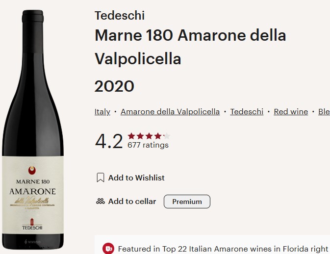 Tedeschi 2020 “Marne 180” Amarone della Valpolicella Classico